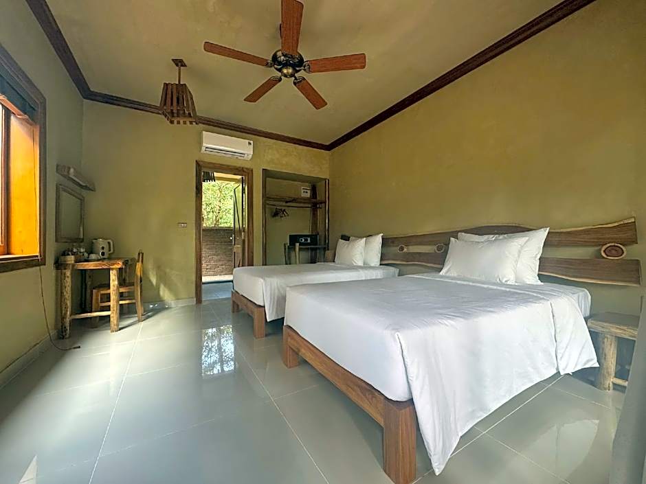 The family room's kitchenette is available for cooking and storing food. The family room features air conditioning, a tiled floor, a terrace with an inner courtyard view as well as a private bathroom boasting a shower. The unit has 4 beds.